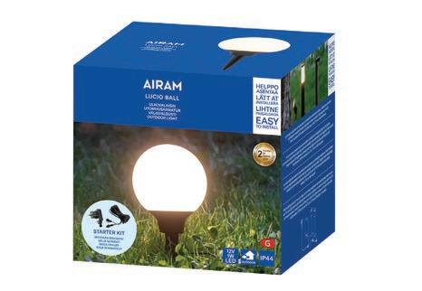 Lucio Ball on koristeellinen ja ilmeikäs valaisin pihaan ja puutarhaan. Pakkaus sisältää kolme koristevalaisinta, muuntajan (12 W) ja syöttökaapelin. Lucio pihavalaisinsarjaan kuuluu monipuolinen valikoima erilaisia helposti asennettavia valaisimia. Voit täydentää aloitussettiä yksittäisillä valaisimilla. Valaisimet voi kytkeä syöttökaapeliin haluamaansa kohtaan erityisen liitoskappaleen avulla. Yhdistettyjen johtojen maksimipituus 40 m, yhden muuntajan (12 W) taakse voi kytkeä esim. 12 kpl 1 W valaisimia. Mukana maapiikit.