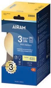 3-Step-DIM lamps can be dimmed by snapping the light switch, no separate dimmer is needed! When the light switch is turned OFF and pressed ON again after three seconds, the luminous intensity of the lamp can be adjusted in steps of 100%, 50%, 7 %. The lamps have a memory function. If the light is on for more than 5 seconds, it will come on the next time with the same light setting. 3-Step-DIM lamps make it easy to adjust the lighting and atmosphere in your home to suit the situation.