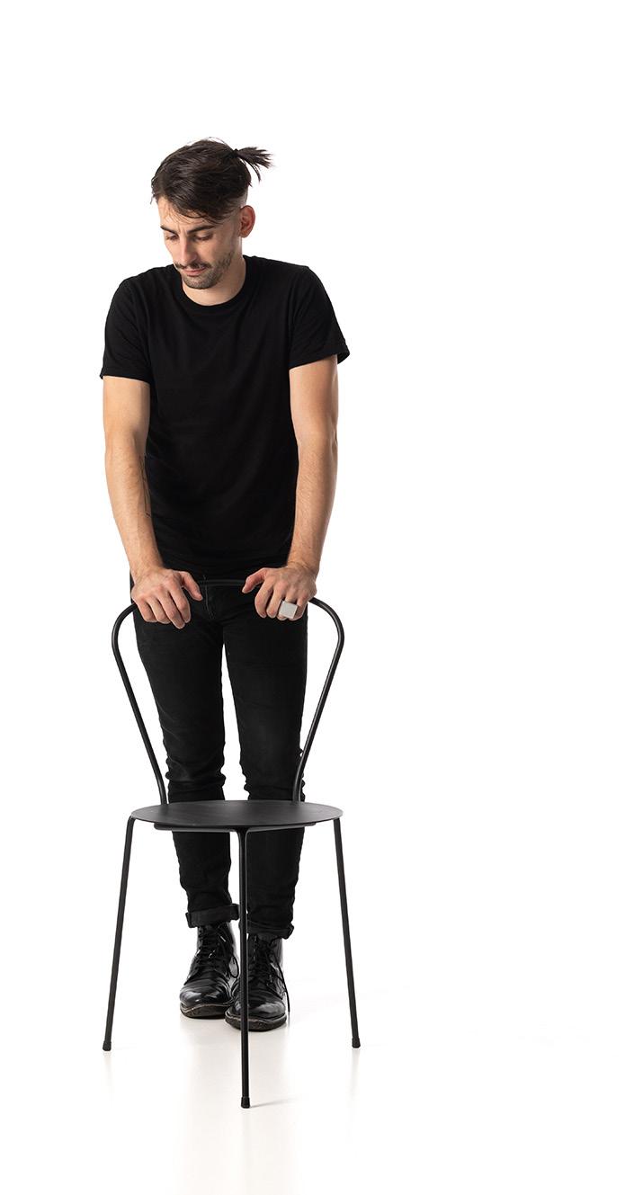 It is a small side chair, minimalist and elegant, and a small stool to be placed throughout the house but also on a terrace or balcony. Maxime Lis has eliminated the superfluous while keeping the raw aesthetic. Entirely made in France, they are made of black powder-coated steel. Customizable RAL from 10 pieces.