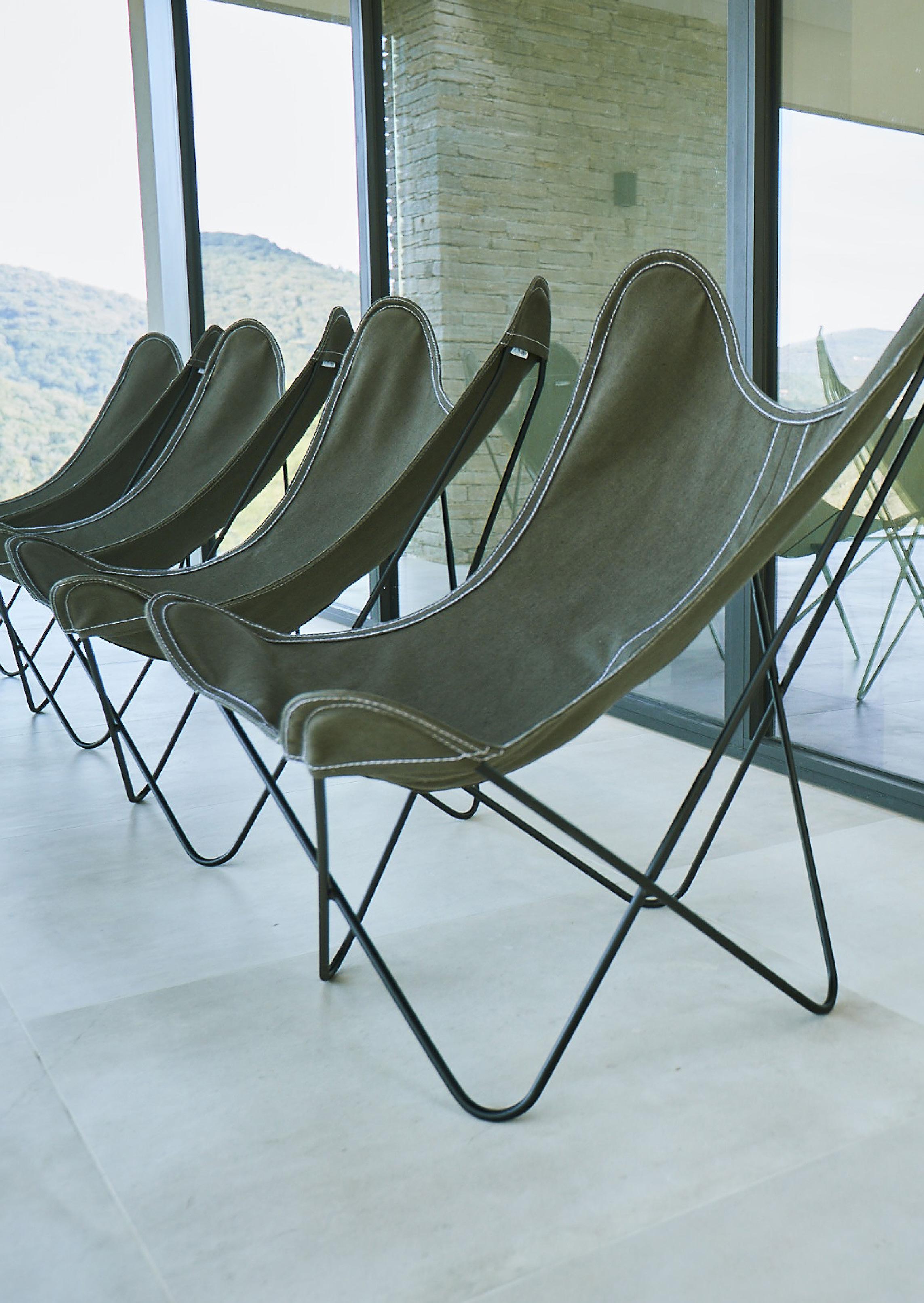 Aux housses en cuir d’origine, succèdent le lin puis le coton, avec les fameuses coutures blanches centrales qui deviendront l’emblème de la marque. Ces housses se changent au fil des saisons, des goûts et des tendances, ce qui participe grandement à l’attachement et à la notoriété de ce fauteuil.