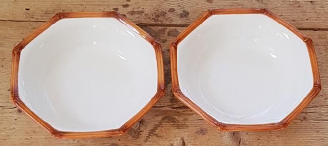 Serie di 10 piatti con decorazioni floreali policrome e bordi a finto bambù in ceramica