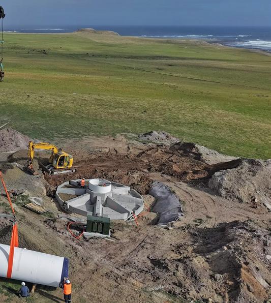 Like most things on the Chathams however, that was easier said than done. For a start, everything - absolutely everything, from the concrete and steel for the structures, to the high tech hearts of the turbines themselveswould have to be shipped in from the mainland and assembled on the Point Durham site that had been chosen. Serendipitously, construction company Hunter Civil had mobilised to the island for a barge ramp project, and after negotiations with Chatham Islands Electricity Limited (a wholly owned subsidiary of the Chathams Islands Enterprise Trust), who were overseeing the turbine project, they came on board as the lead construction company. Together with some local subcontractors, who brought some island can-do attitude, and designers WSP, who had previous experience in building remote wind farms, namely at Scott Base in Antarctica, the project got underway. Pattle Delamore Partners were w.cic.govt.nz