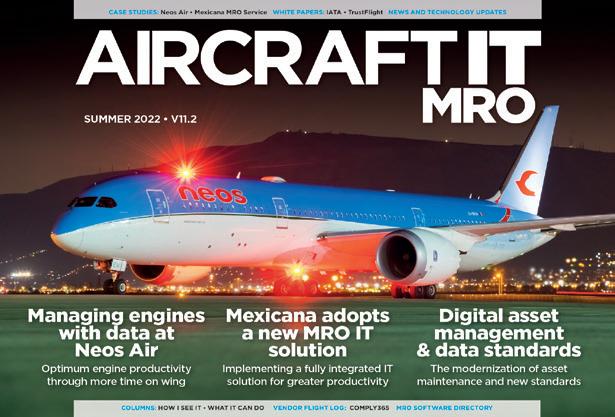 AircraftIT MRO is published bi-monthly and is an affiliate of Aircraft Commerce and part of the AviationNextGen Ltd group. The entire contents within this publication © Copyright 2023 AviationNextGen Ltd an independent publication and not affiliated with any of the IT vendors or suppliers. Content may not be reproduced without the strict written agreement of the publisher. The views and opinions expressed in this publication are the views of the authors and do not necessarily reflect the views or policies of their companies or of the publisher. The publisher does not guarantee the source, originality, accuracy, completeness or reliability of any statement, information, data, finding, interpretation, advice, opinion, or view presented.