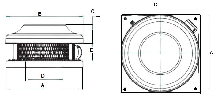 Thefansarecompat blew th rounda rductsfromØ100to315 mm.
