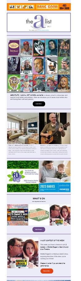 We post exclusive content each week first on our a-list and then shared on social and linked to our lifenow home page. You can be the exclusive sponsor of this feature for only $150/week (min 4 weeks)