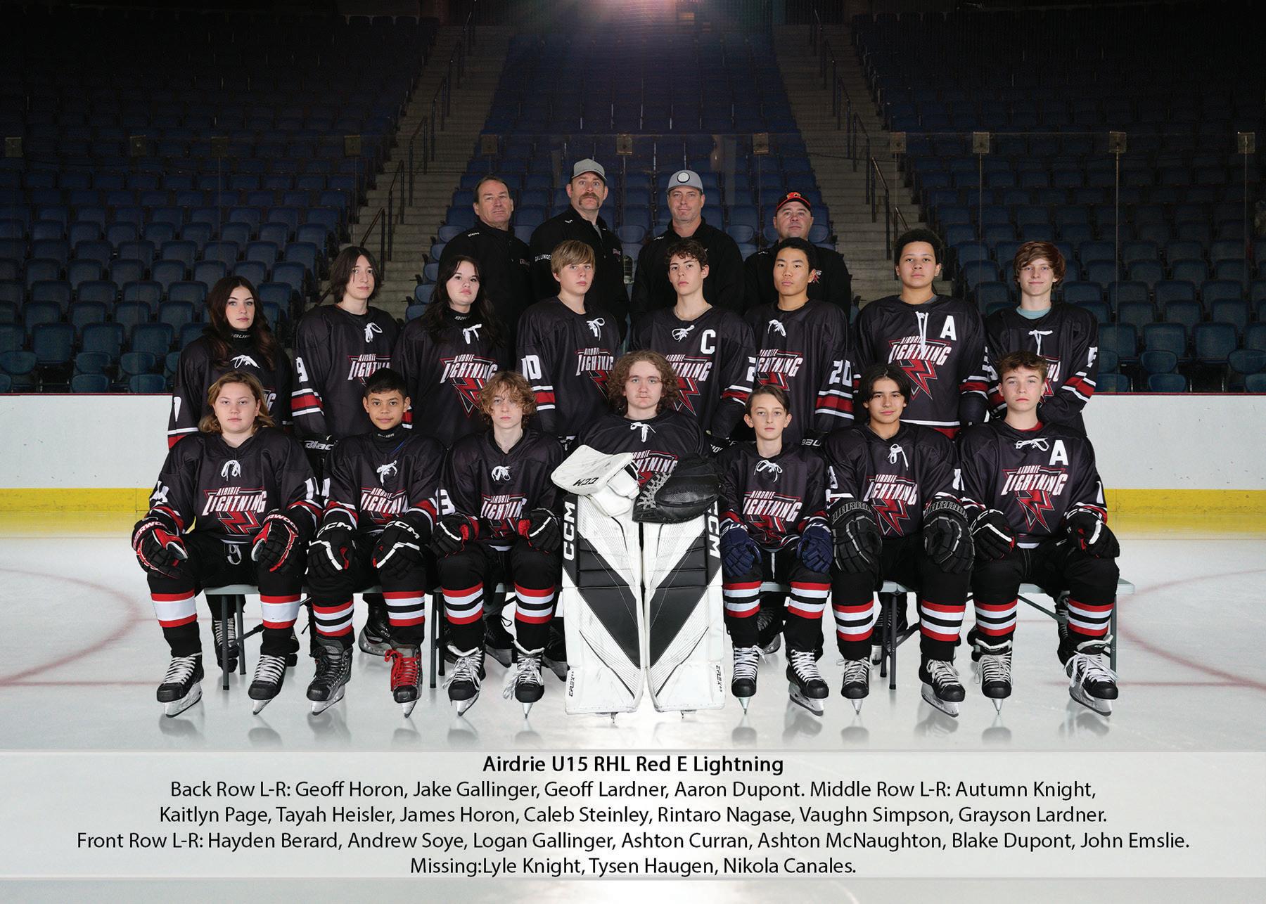 FRONT ROW L-R: Beckham Buchanan, Jack Futers, Brock Beaulieu, Jack Gamache, Cresten Desrosiers, Austin Korpach, Lennox McIntyre, Taylor Hopkins, Blayke Van Dorp.