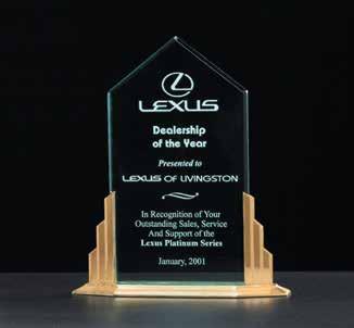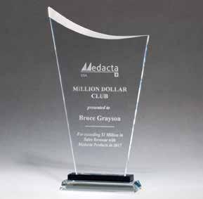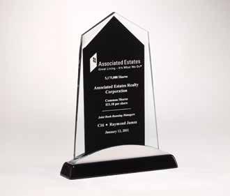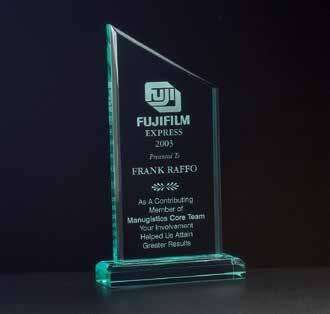 New Glass Awards 2 AL L PRICE S SUBJ EC T TO CHANG E, CH EC K WW W AIRF LY T E C O M FO R CURREN T P RICIN G L A S E R ENG R AVA B L E A L UMINU M P L AT E 2300 4.375 x 11 5 $81 00 L AS E R E N G R AVA BL E A L UMINU M P L AT E 2302 2 625 x 6 5 $60 00 ALL CLEAR GL ASS AWARDS ARE SUITABLE FOR L ASER ENGRAVING OR SAND ETCHING. ART GL ASS AWARDS ARE HAND MADE, AIR BUBBLES AND COLOR VARIATIONS ARE COMMON. SUPPLIED WITH PADDED, SATIN-LINED GIFT BOXES. SEE PAGE 73. G3137 3.375 x 8 75 $45 00 G3138 3 625 x 9 625 $48 00 G3139 4 125 x 10 625 $51 00 0 3 7 5 I NC H T HIC K CL E A R G L AS S Art Glass Twist Blue and Teal with Gold Metallic Accent 2308 2.625 x 8.75 $69.00 L ASE R ENG R AVA BL E A L UM I NU M P L AT E Flamed Shaped Art Glass Award Teal and Green with Gold Metallic Accent Egg Shaped Art Glass Award Blue and Green Helix