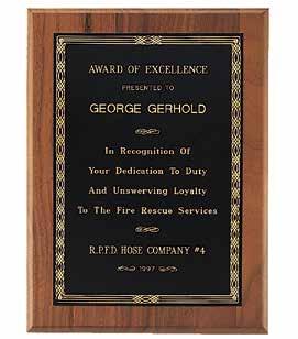 Rosewood Stained Piano-Finish Plaque, Gold Scroll Frame Casting with Black LaserFX Plate