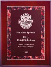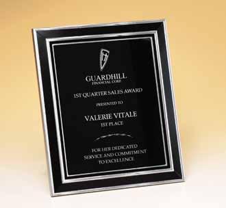 P5077 7 x 9 $60.00 P5078 8 x 10.5 $72.00 P5079 9 x 12 $88.50 High Gloss Rosewood Stained Plaque with Gold Florentine Border Plate High Gloss Black Stained Plaque with Gold Florentine Plate LASER ENGRAVABLE ALUMINUM PLATE P5088 7 x 9 $57.00 P5089 8 x 10.5 $69.00 P5090 9 x 12 $85.50 High Gloss Black Stained Plaque with Silver Florentine Plate LASER ENGRAVABLE ALUMINUM PLATE P4561 7 x 9 $63.00 P4562 8 x