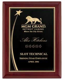 Rosewood Stained Piano-Finish Plaque, Gold Sunburst Frame Casting with Black LaserFX Plate