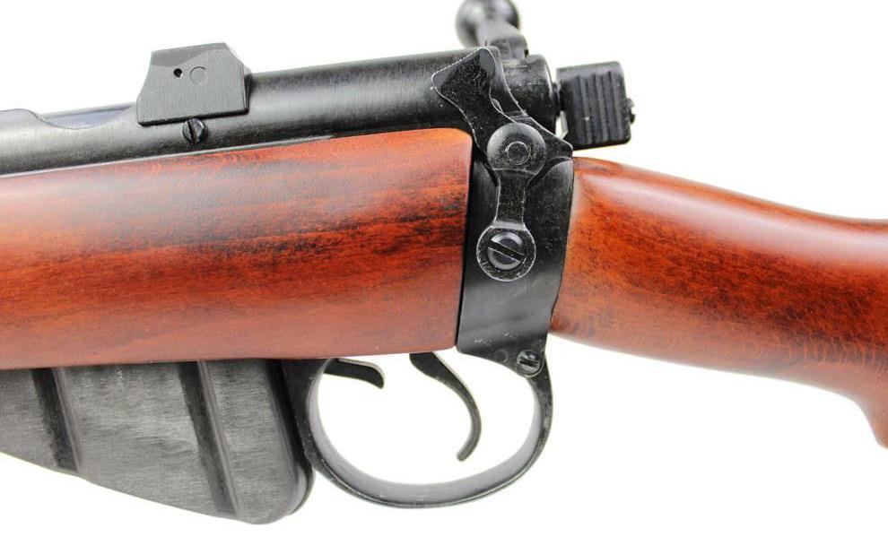 In terms of materials and finish the S&T is impeccable, and if anything it’s just too darn good! The stock is made of high-quality real wood, and the main parts such as the barrel, bolt, receiver, sights, magazine housing, trigger and trigger guard are made of high-grade metal alloys with a steel bolt, and everything hangs together beautifully! However, the finish of the alloy parts all benefit from an innovative Black Oxide finishing process that makes it look new yet aged, whilst the reddish woodwork in just WAY too unblemished; it certainly looks like no Lee Enfield I ever had my hands on and I can see now that prospective owners will be stripping the woodwork down and re-staining it! This is not a criticism in any way, as once upon a time every Lee Enfield must have been “factory fresh”! Although the buttplate is
