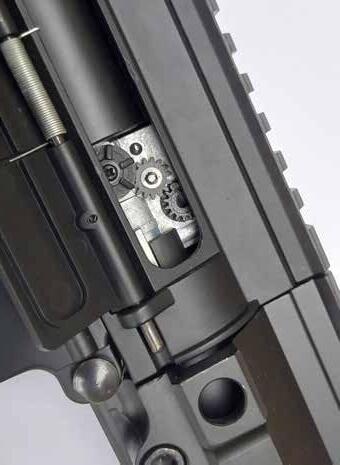 Internally I, and we, have been pretty impressed with what’s appearing these days from Double Bell, and the SCAR H is no exception. The rifle features a reinforced V2 gearbox with a quick spring change function, ally piston head and a piston with full metal teeth, all working with steel gears mounted on steel 7mm bearings. Okay, there’s nothing earth-shattering here, just good, solid parts that will last for a good while, and that are easily upgraded should you wish to go down that path and venture into “full DMR” territory with an uptick in power.