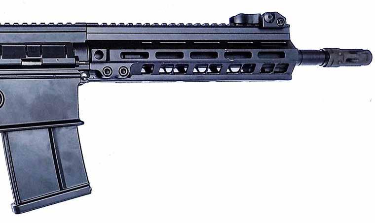 “THE SINGLE-PIECE UPPER AND EXTENDED FORWARD HANDGUARD THOUGH REALLY LOOK THE BUSINESS, FINISHED IN A LUSTROUS “SF BRONZE” THAT LOOKS LIKE IT WILL TAKE SOME ABUSE… I’VE BEEN “BARRICADING” THE RIFLE IN TESTING, AND THUS FAR IT REMAINS UNBLEMISHED… AND I HAVEN’T BEEN THAT GENTLE TO BE HONEST!”