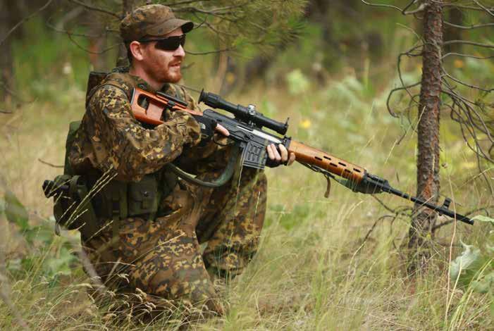 “THE SVDS SHAVES THE FRONT OF THE BARREL DOWN SOMEWHAT TO BASICALLY REAR OF THE FRONT SIGHT ON THE FULL LENGTH SVD, CUTTING OFF NEARLY 100MM/4 INCHES AND MAKING IT SLIGHTLY MORE USER FRIENDLY FOR CONFINED SPACES.”