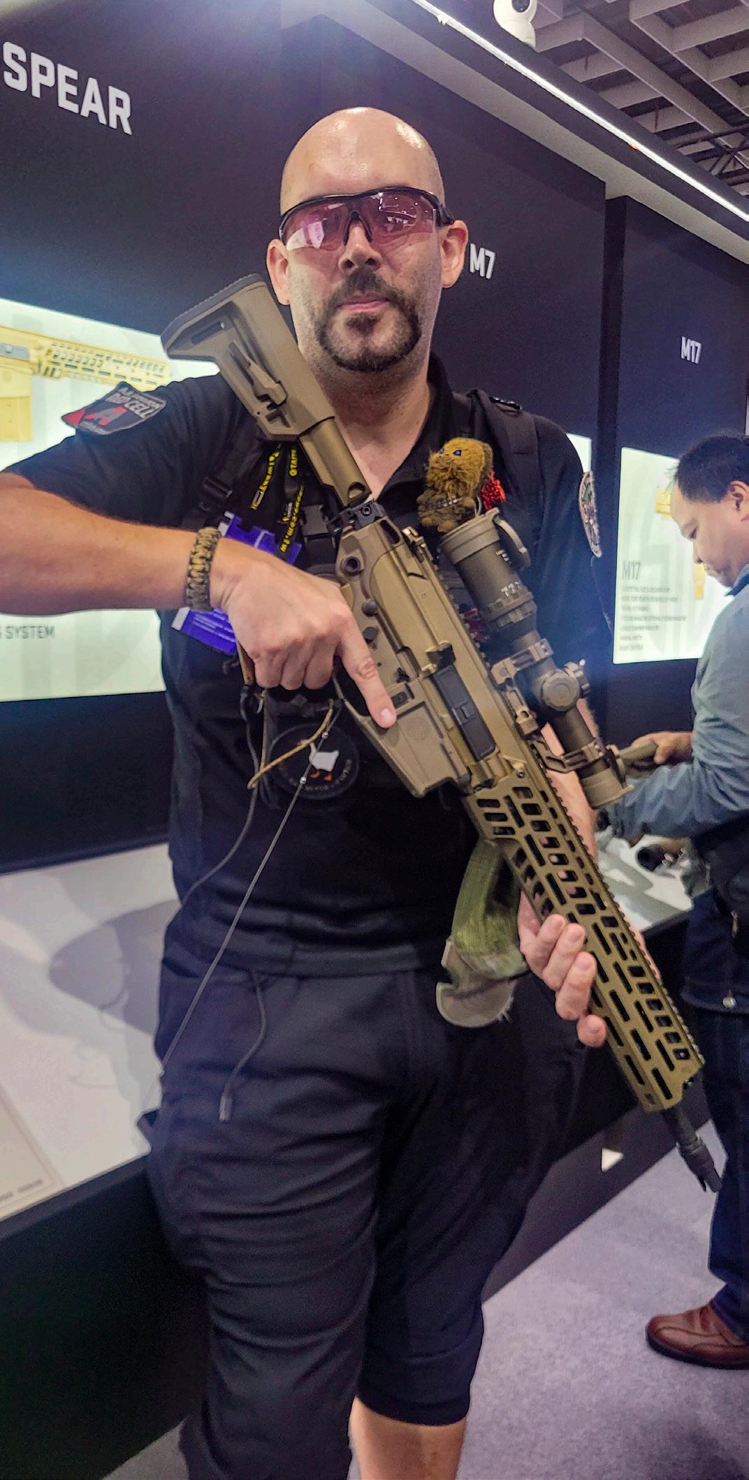 SIG SAUER had an entire array of their USmade variants on show, everything from the M17 and M18 through the MPX, MCX, M7/Spear, M250 and 338 MMG, the latter of which was borderline uncomfortable even for my large frame to carry! I wouldn’t envy anyone fielding that, let alone with ammunition considerations… however, all