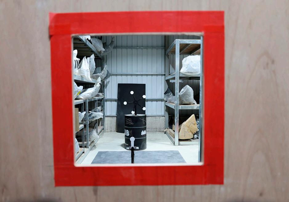 The first stage of the competition started in restricted area A; the contestant faces the target, loads the magazine and chambers the gun in