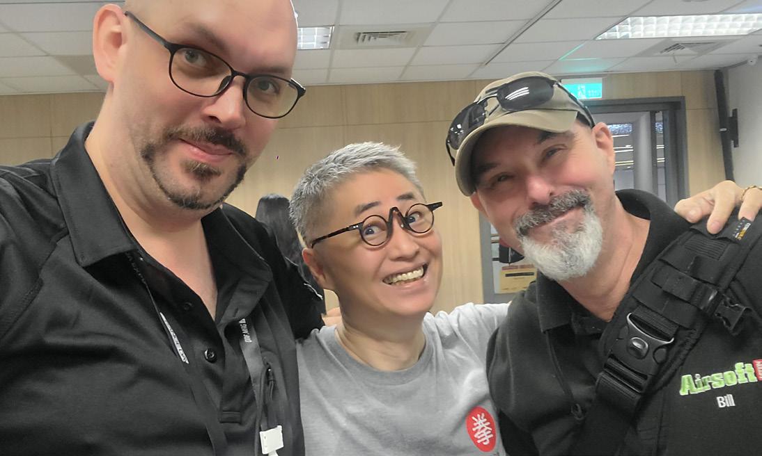 More regular faces like our good friend Vic from Popular Airsoft as well as the Polish WMASG and Swedish Airsoft.nu and Japanese Hyperdoraku media crews were also joined by industry people such as Masaki of Laylax, ‘uncle’ Allen (now of Amarok), and of course Jonathan of Airsoftology who lives out here in country with me, as well as our firm friend Larry of Centurions Option in Hong Kong, Joppe and Gijs from Europe, the Pfitzner Waffen brothers from Germany along with Stephan of Badwolves out there, and my first introduction to the wonderful Turgay from Turkiye. Brian & Trish as well as Clive Santos from the Philippines who I met in Taiwan and at the world shoot and of course the very lovely ladies Jillian and Ning of Hong Kong’s competitive shooting scene along with Cyrus who joined them, all of whom were joined by the numerous good friends and industry people I know in country, as well as teammates, players and wider fans of my work and what we do in general at Airsoft Action it seems, and especially the Warhound Tactical guys who were brought over by Amarok to help create some excellent events coverage pictures and videos and who I gave a tour of the highlight new releases with.