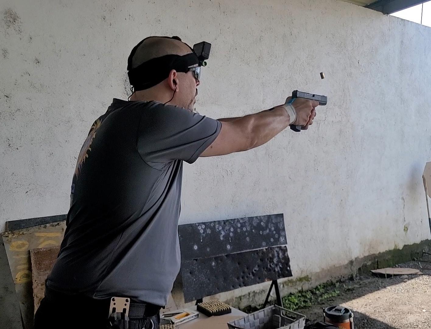 stoppages; Yijun had a few stovepipe jams in a row although to be fair the Glock felt sluggish and like it needed a clean anyway. You really need to keep the frame of the pistol stationary until the slide fully reaches the rear of travel and bottoms out on the frame and transfers the recoil muzzle flip to it; if you allow the frame to move earlier it will rob the inertia from the action and result in stoppages, so proper stance and handling are things that have to be considered by, or imparted on, new shooters.