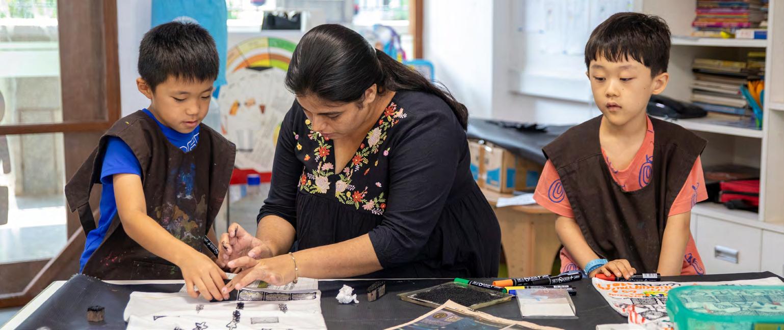 Beyond the homeroom, students engage in specialist subjects including Physical Education (PE), Music, Art, Design Technology, Indian Studies, and World Language (Spanish, beginning in Grade 3).