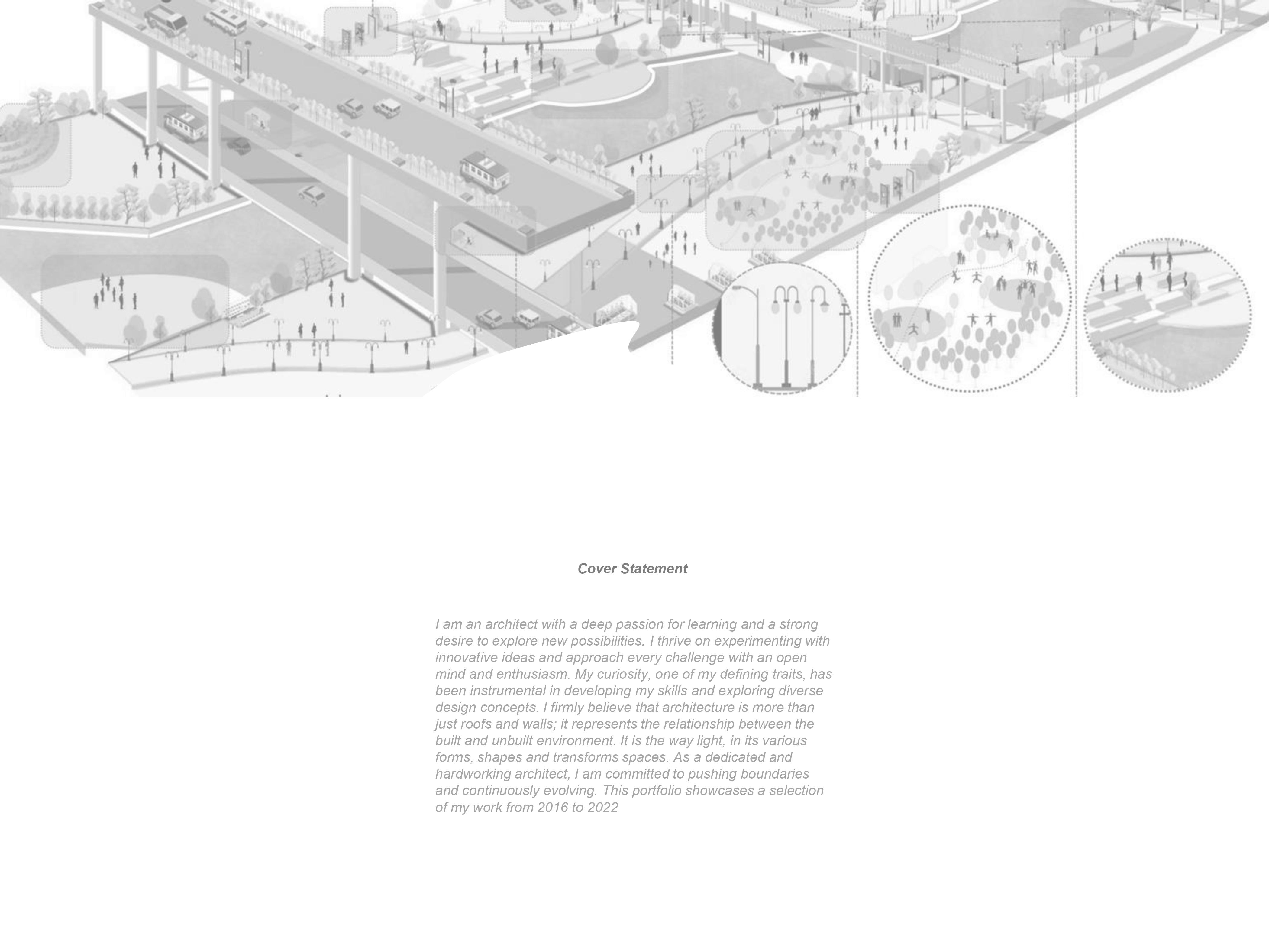 Each project represents a unique moment of growth, learning, and exploration in my architectural journey. From the foundation built during my undergraduate years to the advanced concepts developed during my graduate studies, and the practical insights gained through my professional experiences, this portfolio reflects the depth and breadth of my design evolution.
