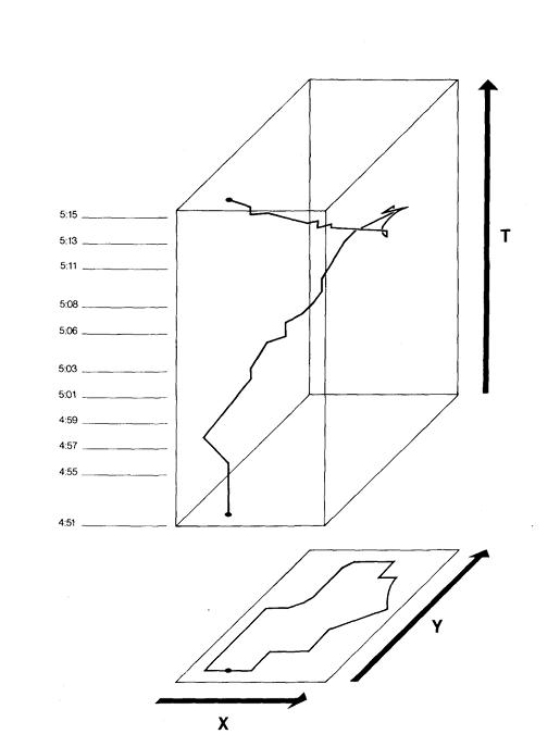Mapping is particularly complex in places that are ‘inbetween’ due to the transitory nature of its users and their activities. Hence counter-maps are produced to overcome the standard tropes of mapping and representation. These maps are beyond the ‘rationalised Western model’ (Awan, 2016) of cartography to reclaim the agency of the transitory communities. Alternate mapping practices as suggested by Nishat Awan in her research paper, ‘Diasporic Agencies: Mapping the City Otherwise’ include mapping methods3 undertaken by native transitory communities before the acceptance of standard cartography as a norm. These counter-cartographic methods ‘map something other than the earth and its geography’ (Awan, 2016, Chap 7, p.1). These include mapping ‘emotions and narratives’, events, trans-local activities and networks, organisations, borders etc (Awan, 2016, Chap7, pp.1-2). However, time is a central theme in temporal urbanism. Many mapping theorists (Wood and Fels, 1986; Corner, 1999, Awan 2016) have described the inadequacy of the current mapping practices to illustrate space and time. As Wood and Fels (1986, p.83) remark in their journal article, ‘Design on Signs/Myth and Meanings in Maps’ ‘We have to see a map as having thickness in time.’ As we are more interested in mapping the local behaviours of a place, we need to recognize that ‘maps embody time’ just as ‘they embody space’ (Wood and Fels, 1986, p.82) (See, Fig.2.4) New technologies like remote sensing and GIS are used today to map spatio-temporalities of a place but what is not recognized is that these empirical data-driven mechanisms ‘create new opacities that even the most advanced seeingdevices’ producing spatial patterns ‘cannot dispel’ (Mackenzie and Munster, 2019 cited in Awan, 2020) .