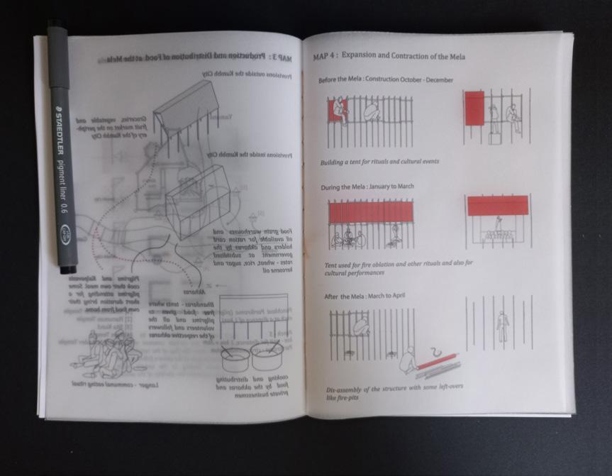 of the Kumbh Mela. The rituals and performances associated with the collective religious beliefs have led to the development of different spatial alternatives. But despite the diversity in local conditions addressed in urban theories, mapping practices have not evolved beyond the universal cartographic systems. Therefore, this project addresses the gap in the mapping practices of these temporal cities and creates alternate mapping tools to reframe what already exists and ‘unfold new realities’ (Corner, 1999).