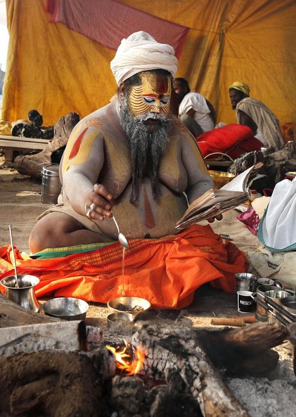 Naga sadhu – militant ascetic (living a secluded life and only appear in public during the Kumbh Mela)