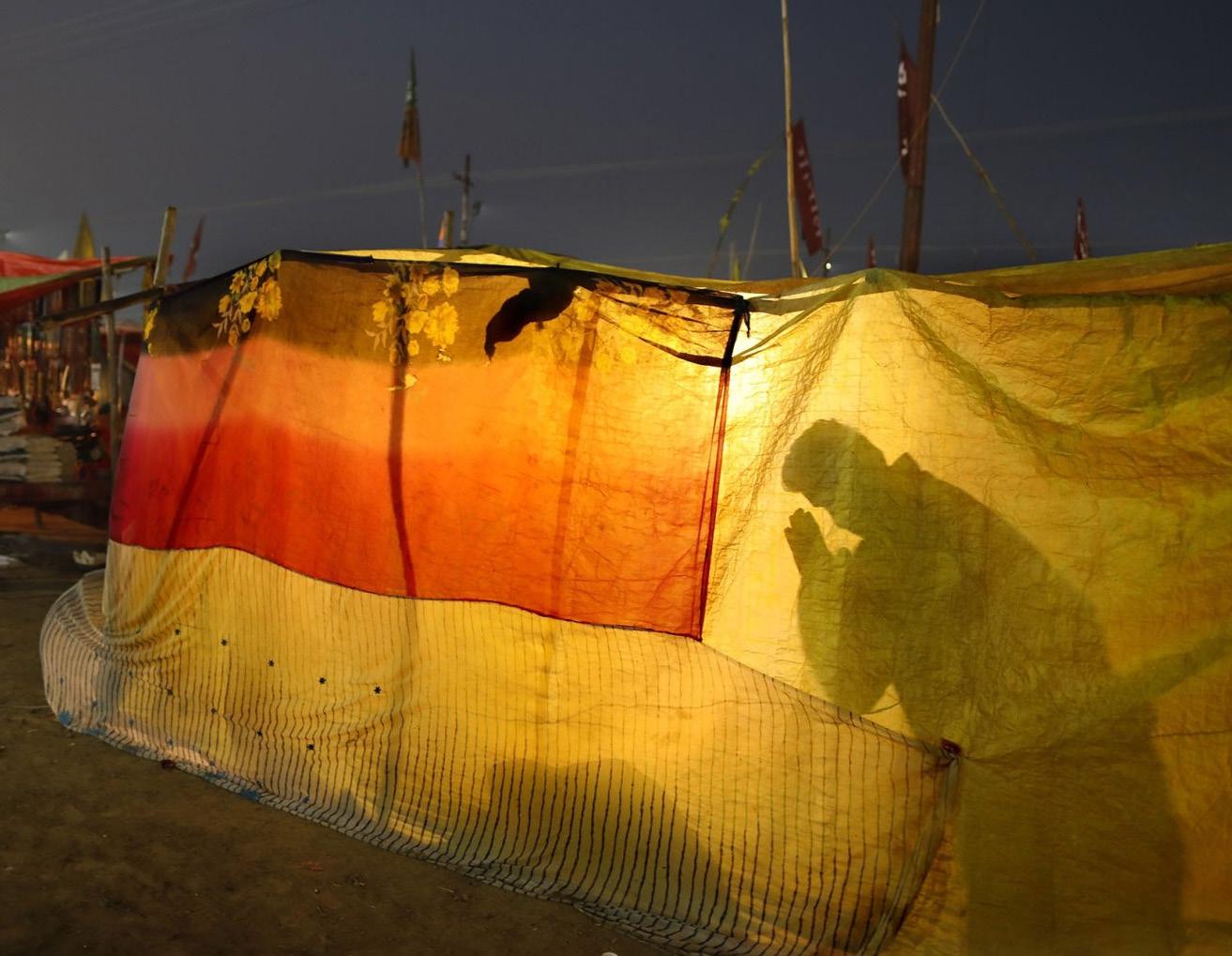 Fig.6.5: A kalpavasi praying inside his tent. An individual experience compared to a more communal event.