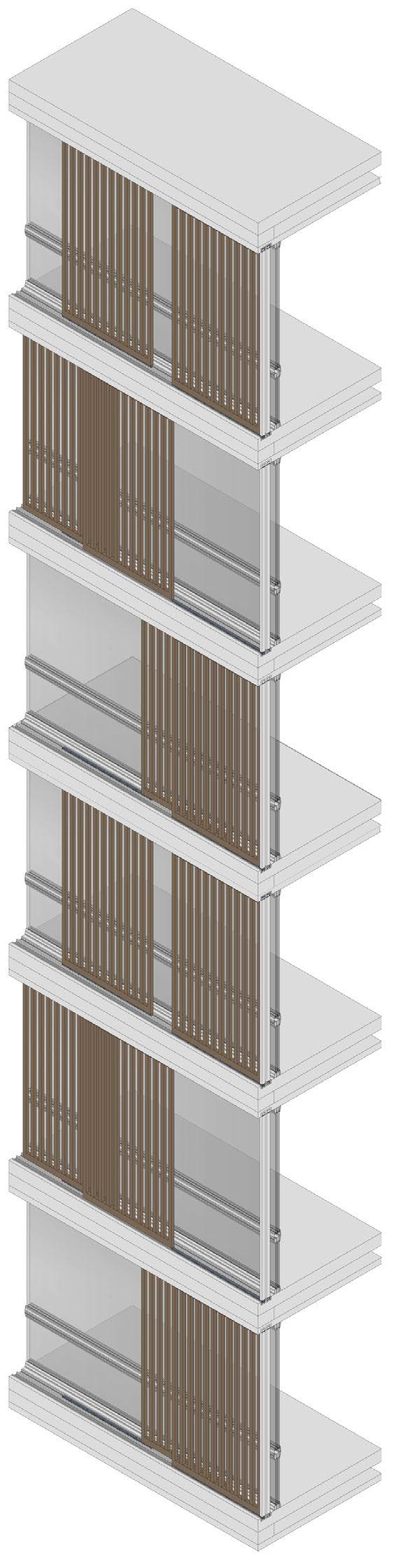 The facade system chosen is insulated curtain wall system to reduce the amount of sunlight that penetrates through the facade. Additonally, angled terra cotta fins have been provided according to the solar
