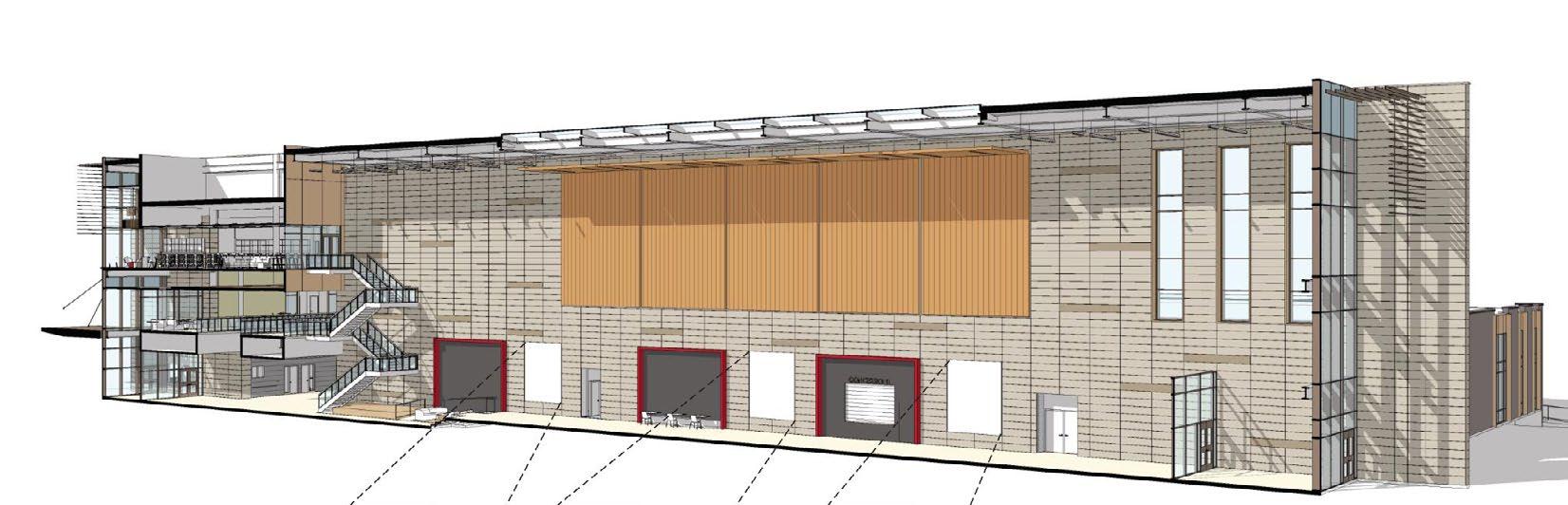 Wellness Space Consolidated on two floors with expanded program area and direct access to a new Football/Soccer/Lacross Field positioned along Townsend Ave.