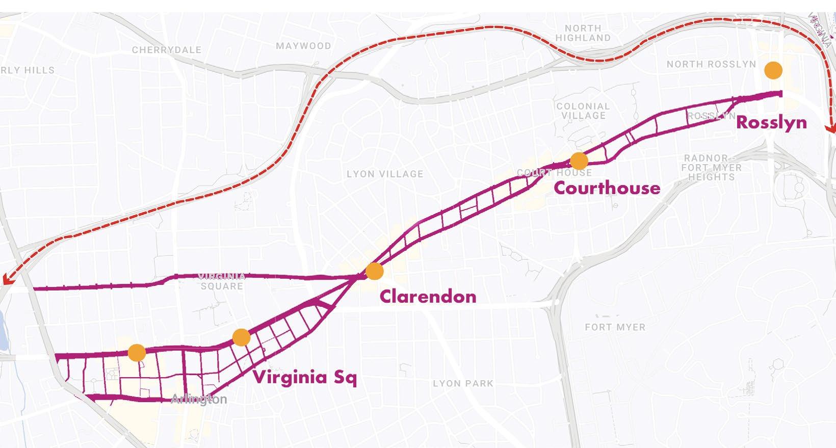 The Rosslyn- Ballston Transit Corridor (3-mile long)
