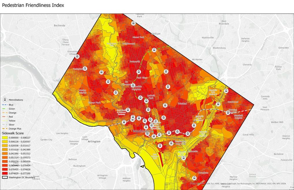 Source of the map for pedestrian friendliness index: https://maps2.dcgis.dc.gov/dcgis/rest/services/DCGIS_DATA/Mo veDC/MapServer https://storymaps.arcgis.com/stories/7a7ad09d6f484c3aa4e96e3e7ee5836c/print