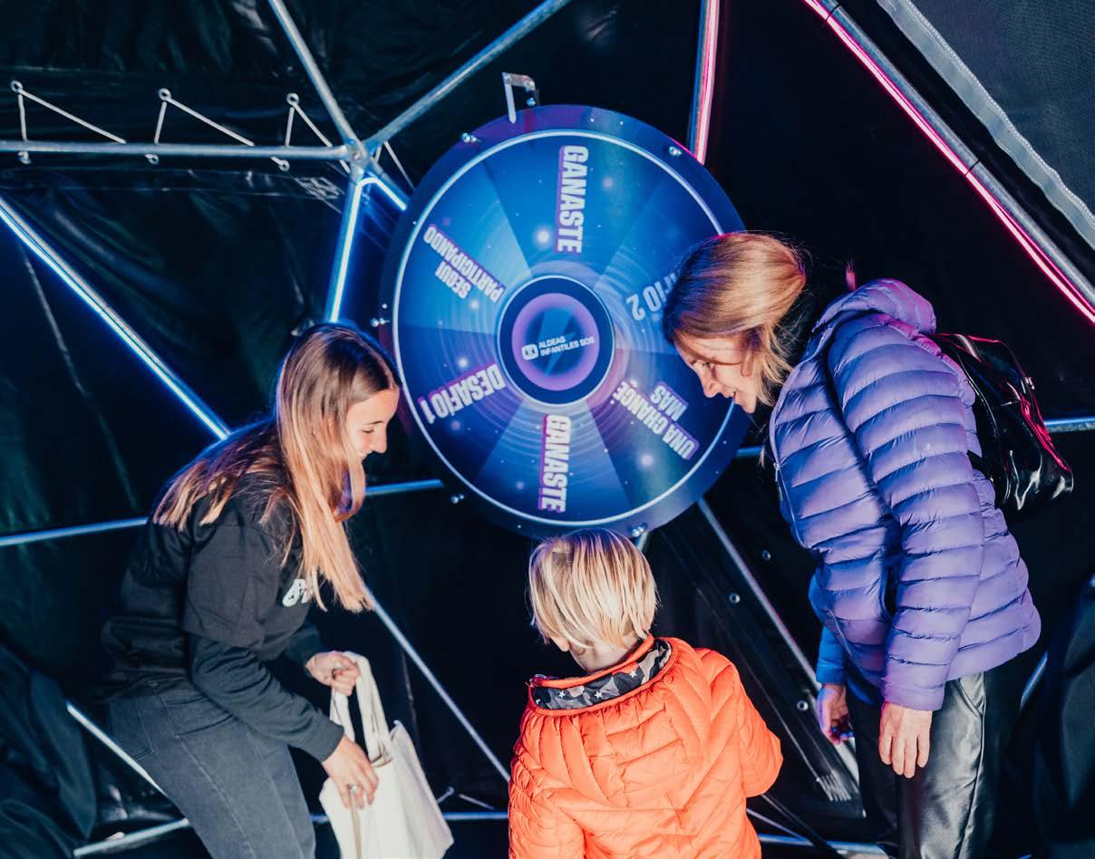 La gran atracción de estas jornadas fue el domo futurista, en el que recibimos a las familias con juegos como la competencia de repiqueteo galáctico o la ruleta de la fortuna dónde concursaban por diferentes premios especiales.