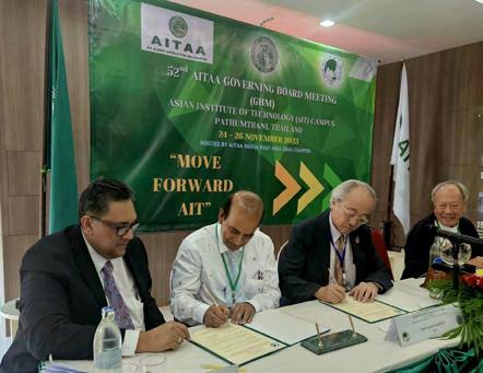 27 November 2023 – On 25 November 2023 during the 52nd AITAA Governing Board meeting, AIT President Prof. Kazuo Yamamoto and AITAA-Bangladesh Chapter Advisor Prof. Dr. Md. Kamal Uddin on behalf of Mr. Abdul Kashem Md. Shirin, President AITAA Bangladesh Chapter signed the donation agreement for the renovation of a Single Unit Student Dormitory.