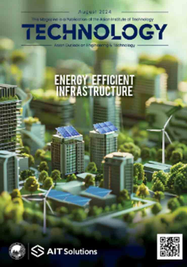 This issue of Technology Magazine explored how innovation and sustainability are key to the future of our built environment. Focusing on the implementation side of energy-efficient infrastructure, this issue included a conversation with Thanat Kriausakul, VP-Sustainability and CDO – Digital and Innovation, Pruksa Holding, where he elaborated on Pruksa’s commitment to energy efficiency and renewable technologies. In another article, the authors shared their experience in incorporating sustainable practices for the planning and designing of a new elementary school. As presented in this issue, energy-efficient practices are essential in moving towards a resilient and sustainable future. And to drive energyefficient infrastructure, innovation in design and application of advanced and emerging technologies are needed. � https://solutions.ait.ac.th/wp-content/ uploads/2024/08/TM2024-August-sm.pdf
