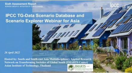 SMARTS CENTER AT SERD/AIT IS HOSTING THE IPCC TG-DATA SIXTH ASSESSMENT REPORT SCENARIOS DATABASE FOR ASIA WEBINAR FOR THOSE WORKING ON AND INTERESTED IN MODELING/SCENARIOS/ DATA.