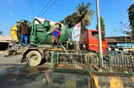 A situation of using desludging vehicles to irrigate the plants in Tripura