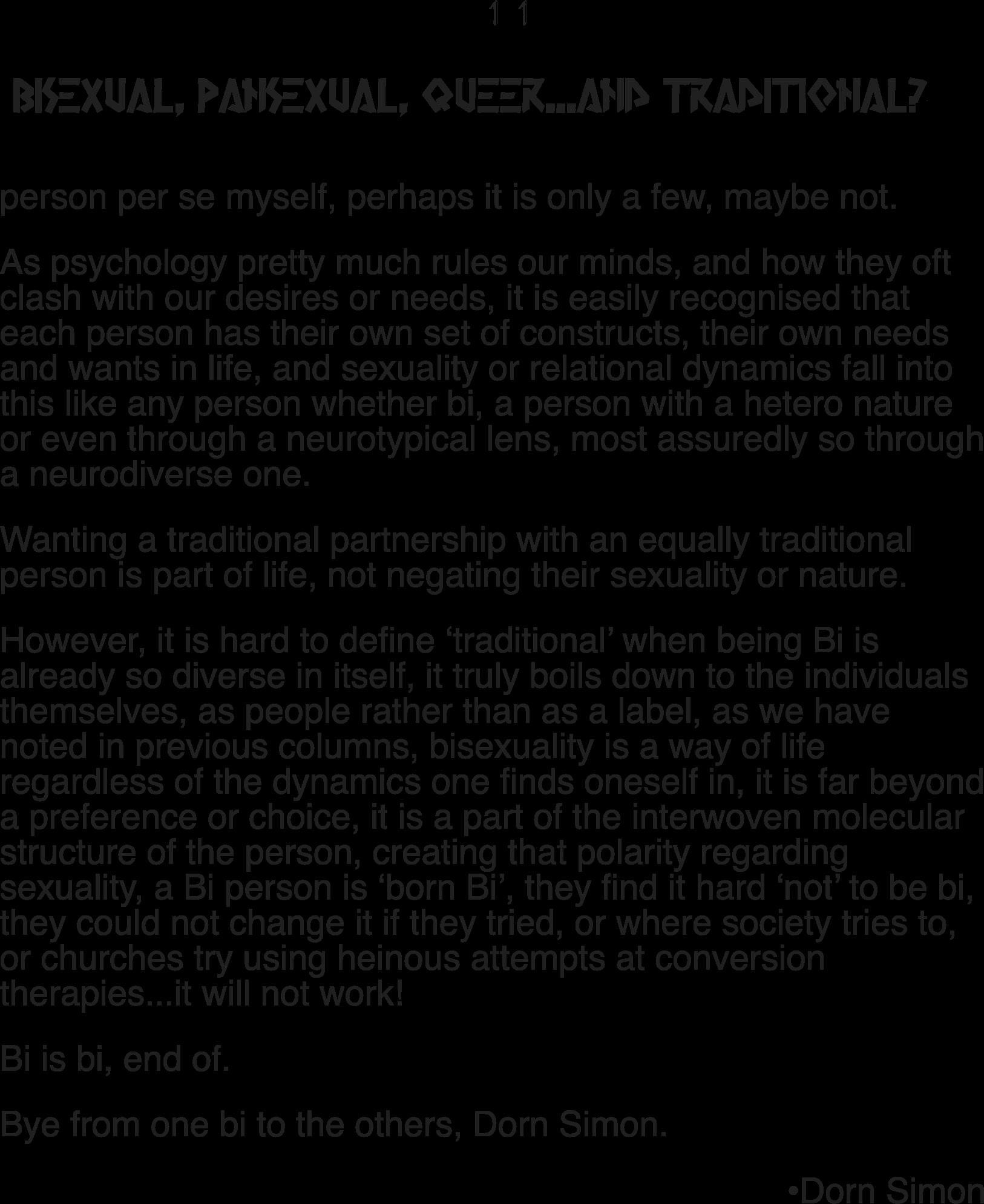 Odd I know, as it is something I have struggled to come to terms with myself. That moral thinking, coating a traditional mind within a bisexual being, body and yearning.