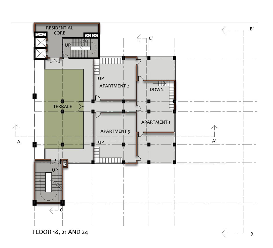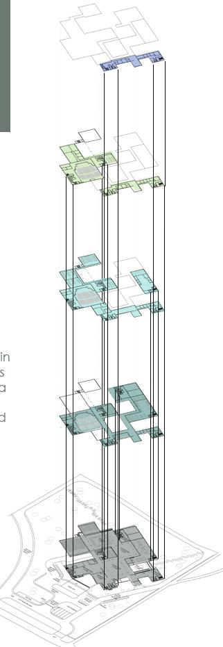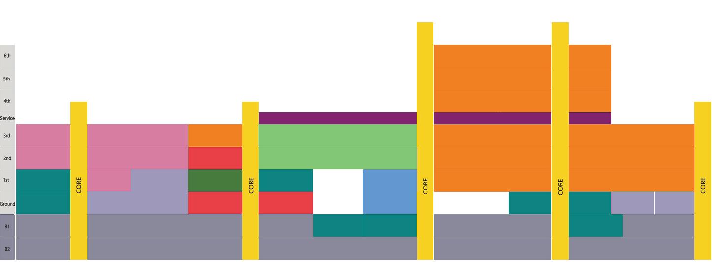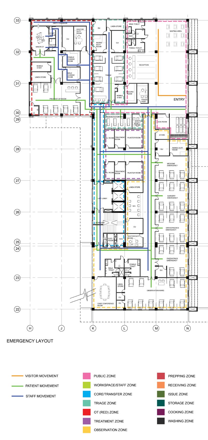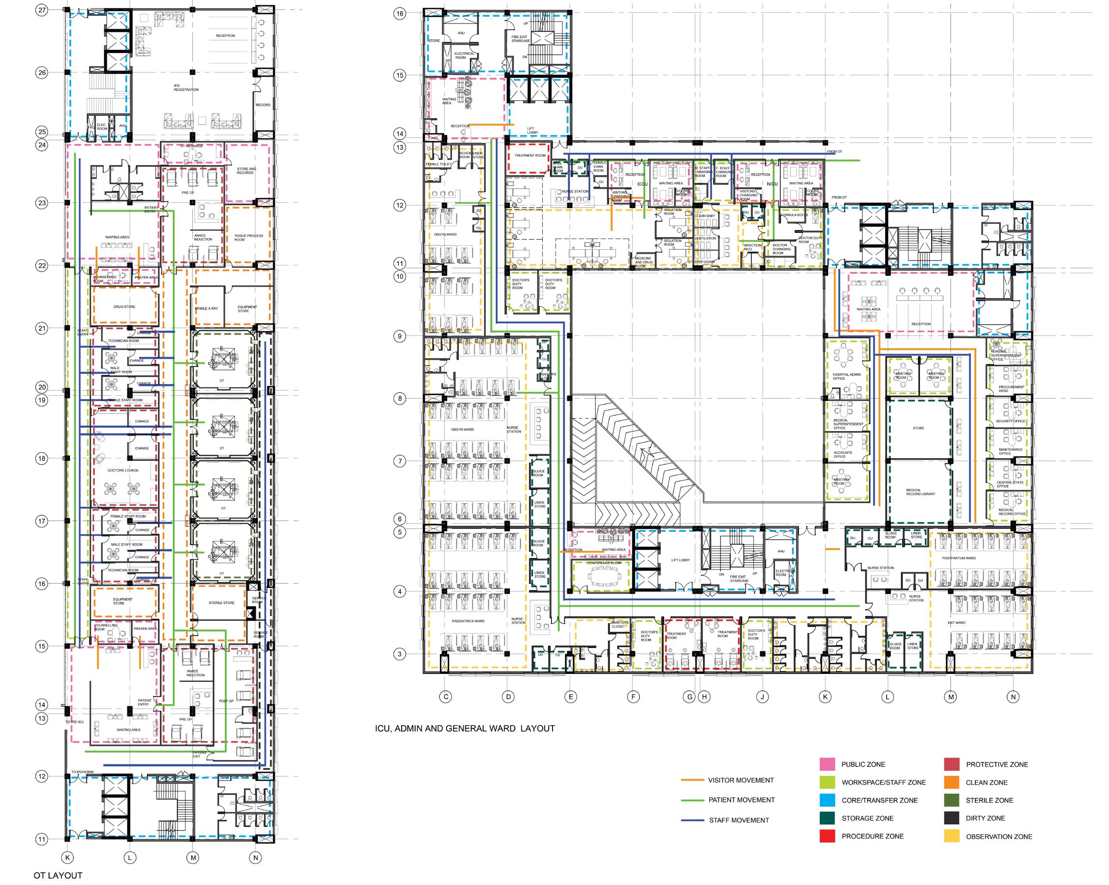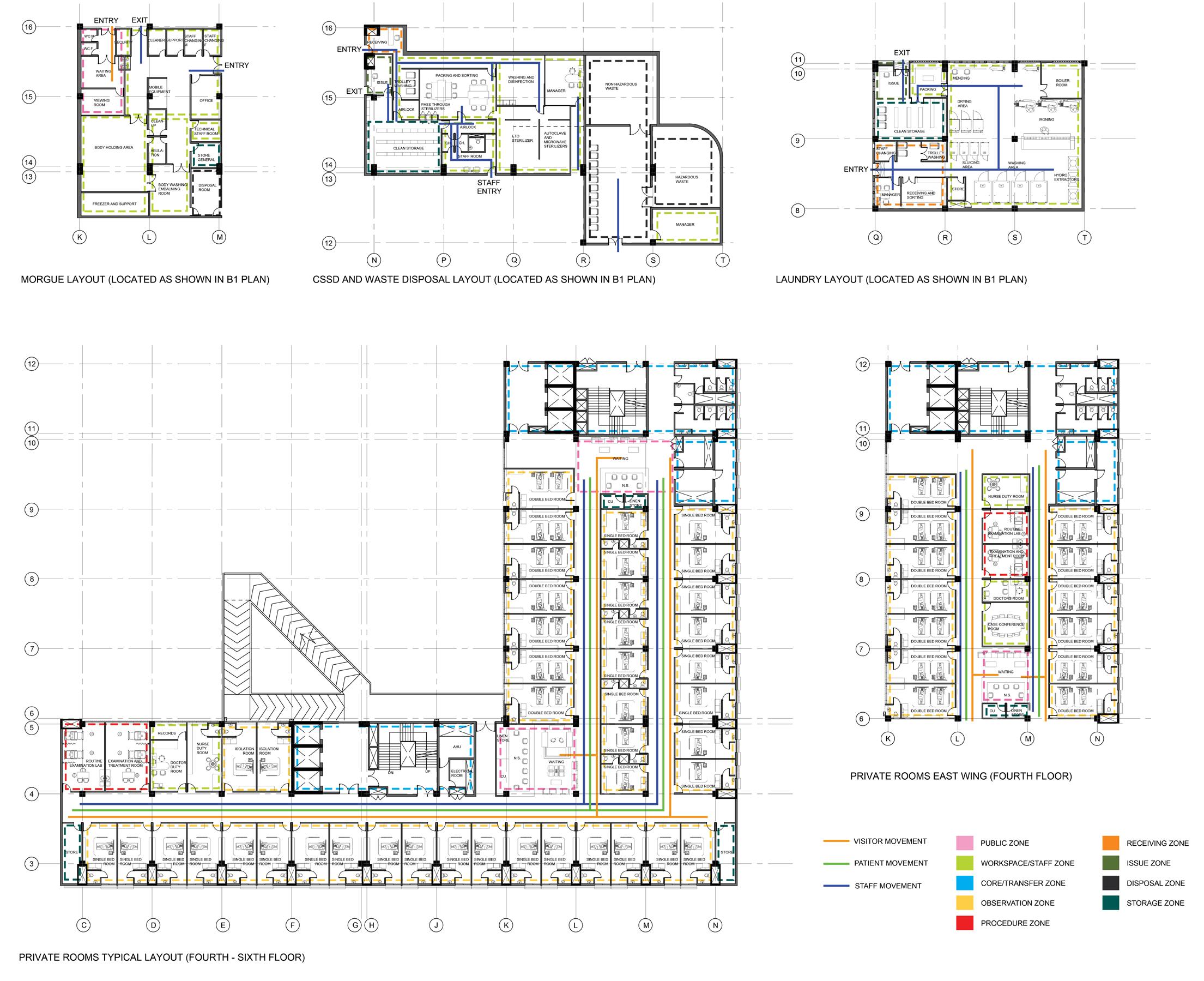 Each IPD has its own nurse station, clean and dirty utilities and washrooms. Treatment rooms are shared by IPDs sharing a floor.