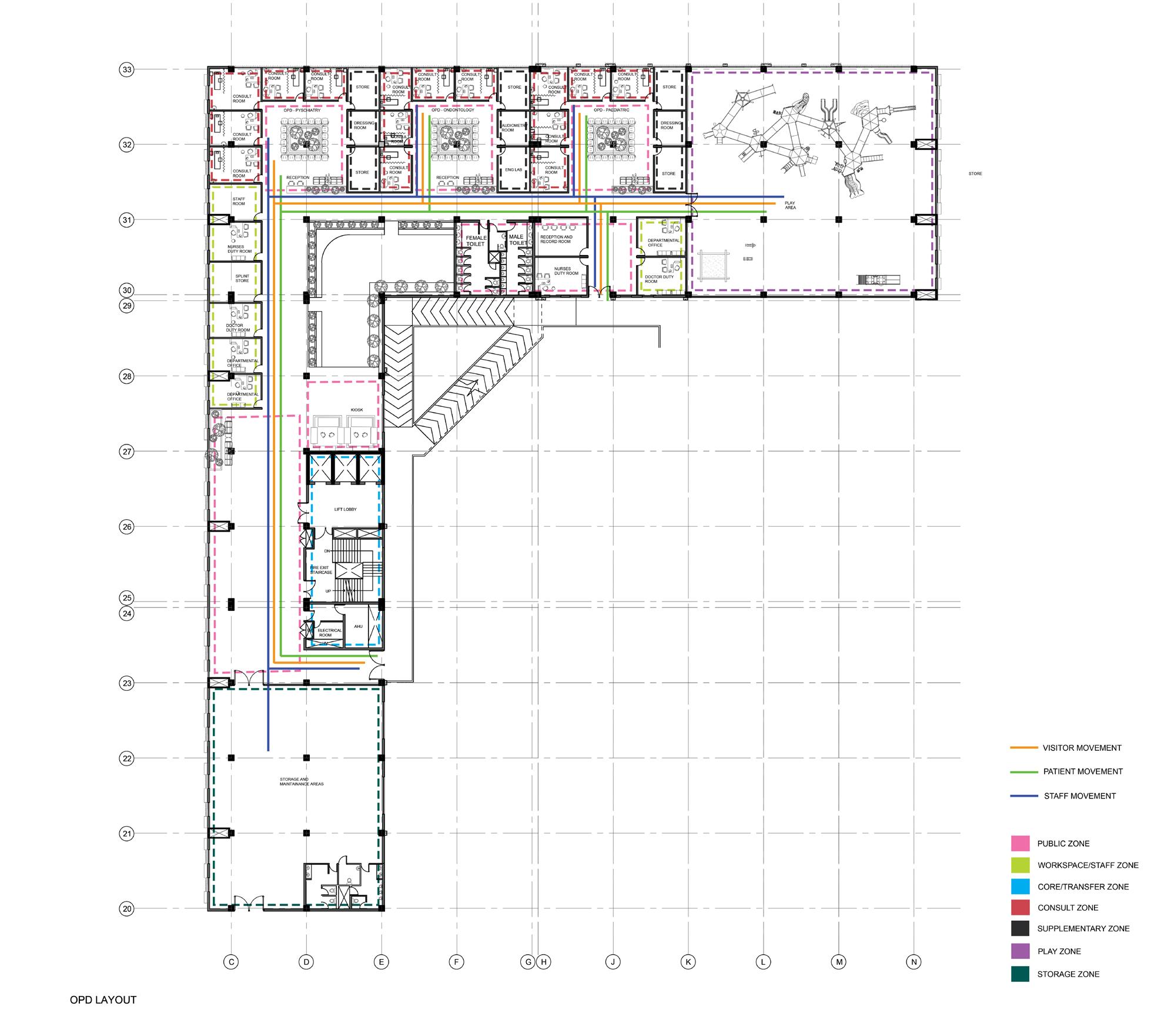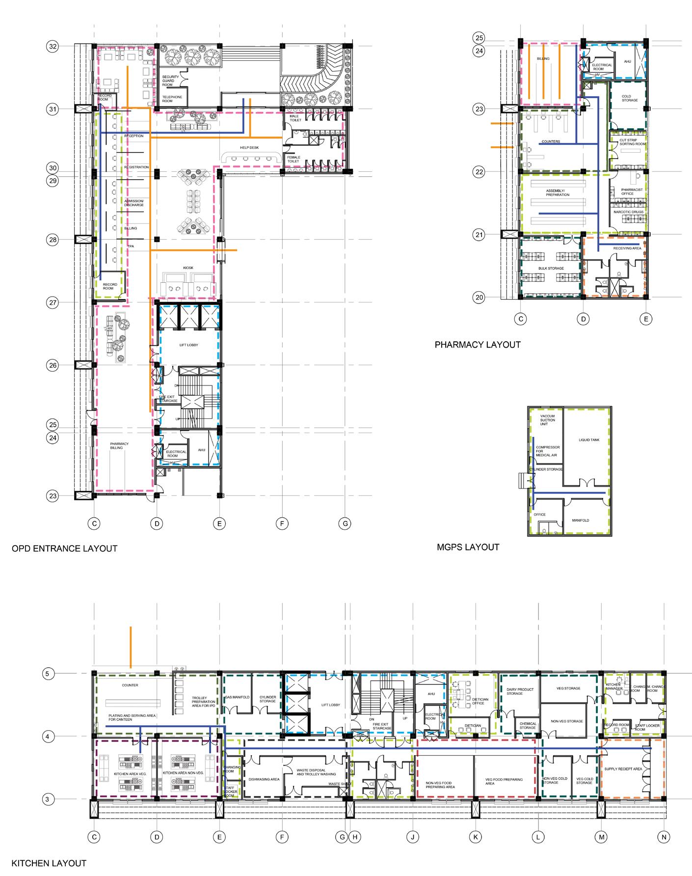 Each OPD has its own consult rooms, waiting area and procedure rooms. Nurse duty rooms and admin offices remain common among OPDs which share a floor.