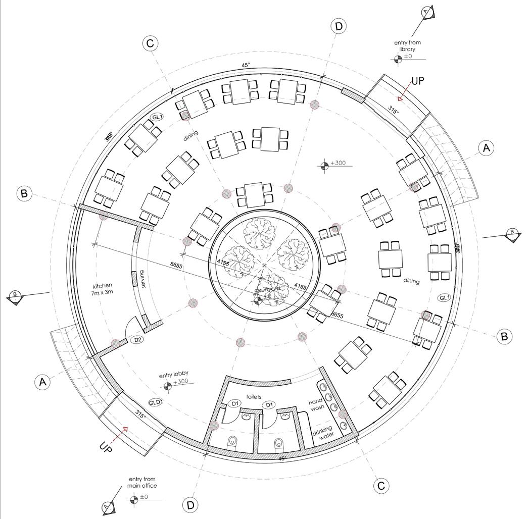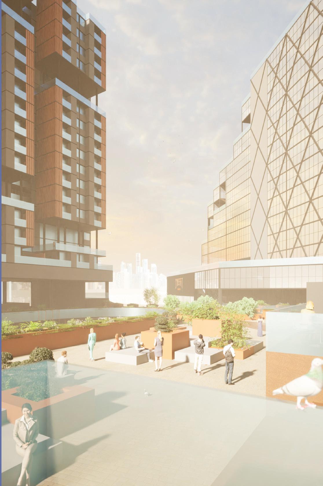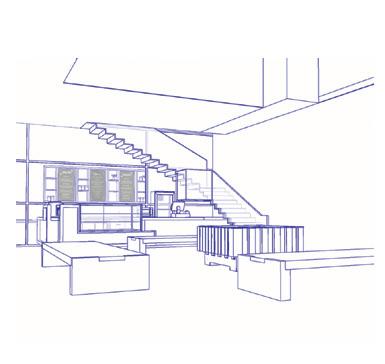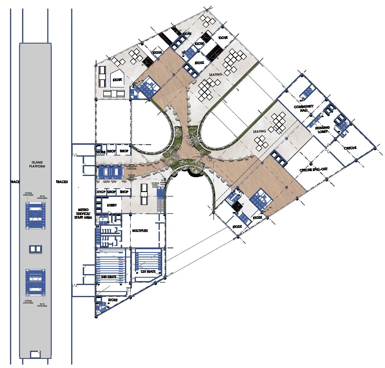 Developing seating and kiosk areas to enliven the main public floor with planters along the main movement paths framing views and directionality