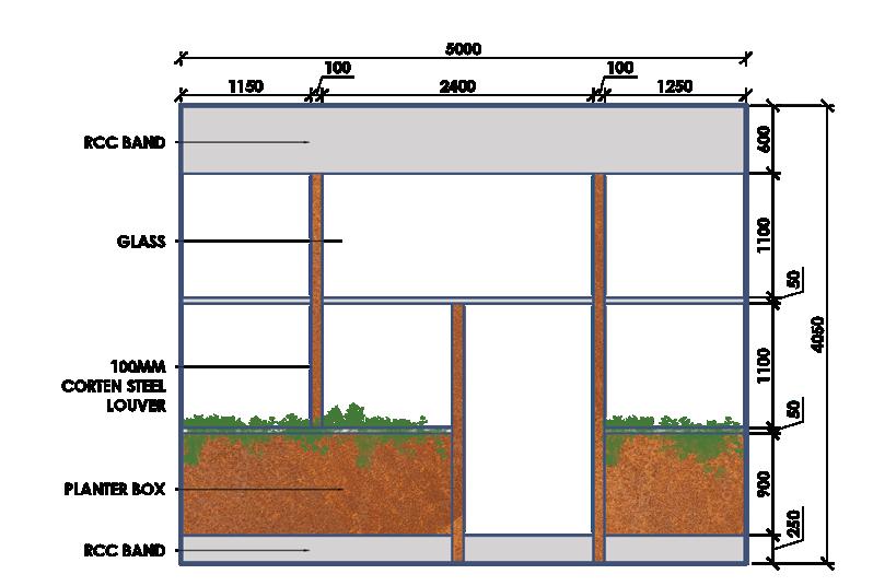 Reducing direct radiation, Diverting/absorbing noise, Creating effect of pixelation to show Bangalore’s IT character