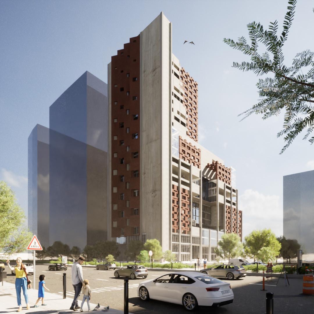 Mixed use development consisting of retail, offices and apartments with a character fitting AUDA headquarters