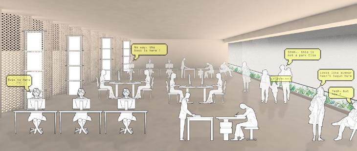 Visualizations. To virtually create a space, multiple tools are explored, from rendering of 3D virtual models, the visualizations were done with the materials which were executed at site, through iterative mock-ups.