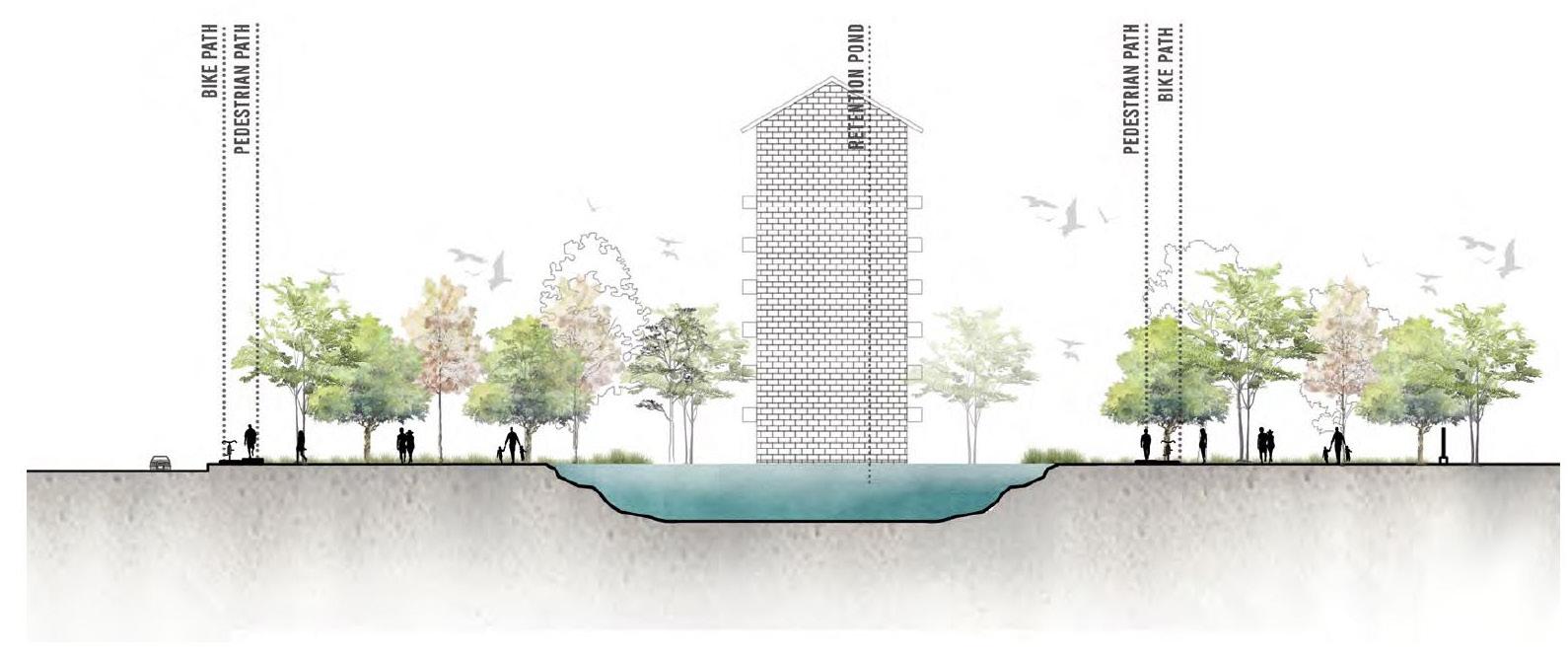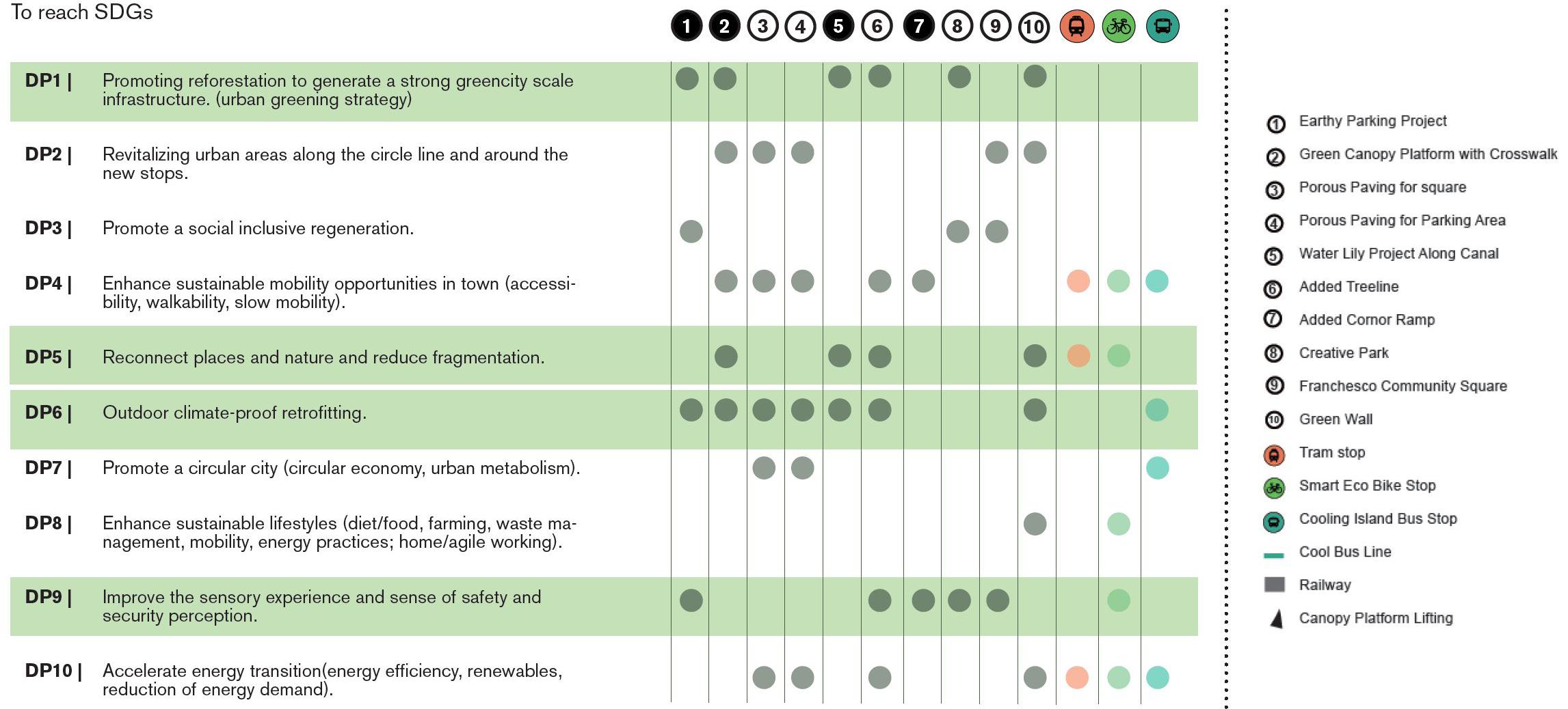 To improve the thermal sensory along the main street and transit area. The rainwater collected from street through permeable surfaces and water from canal will be filtered before reusing for cooling system.