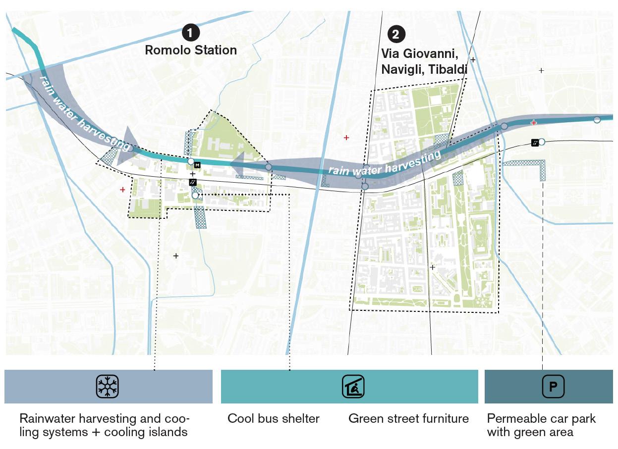 To improve canal perception will not only benefit for local residences and businesses but also neighborhood people and Milan’s residents. This strategy will the providing of natural filter and some spots to pause while passing by the canal sides.