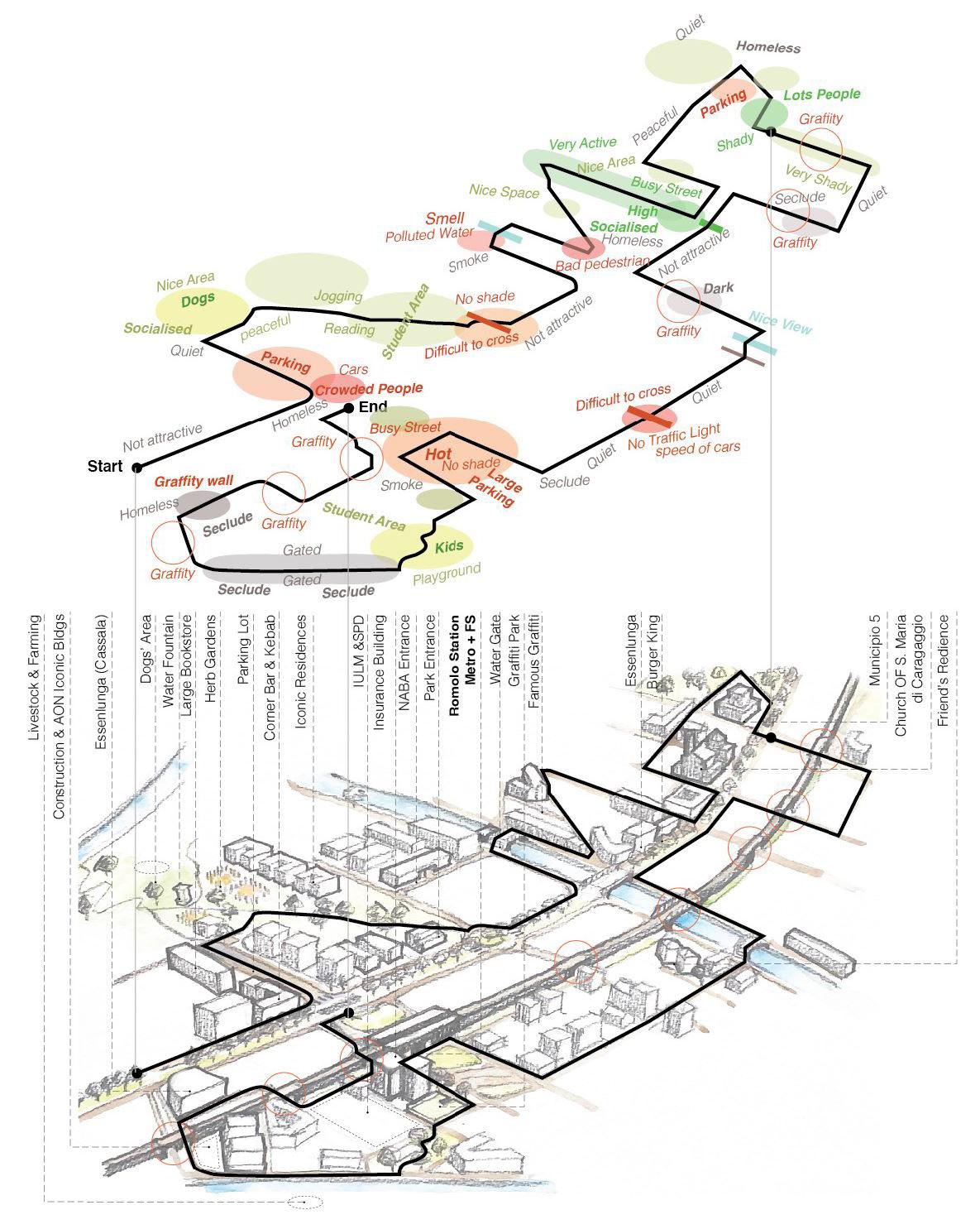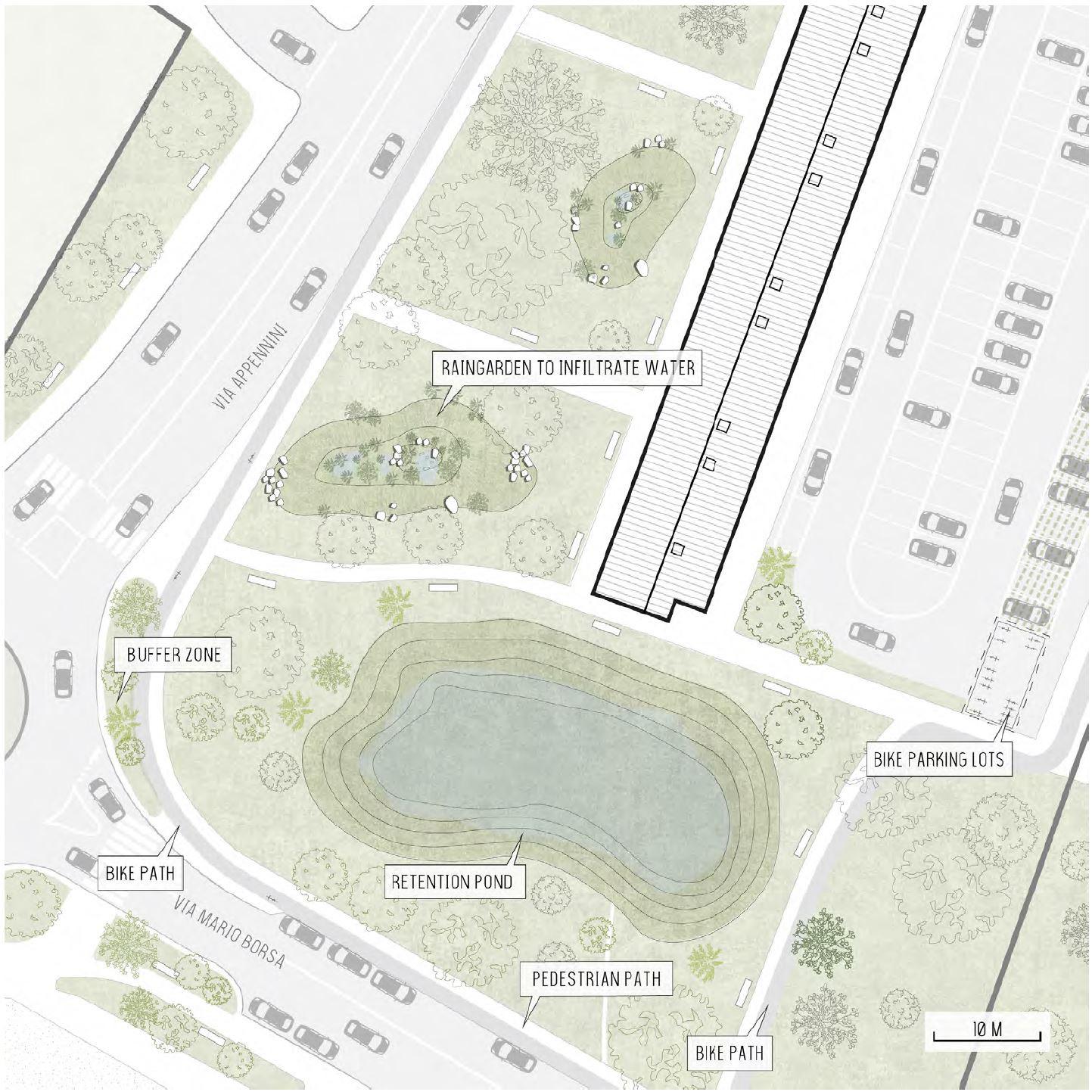 The large exposed area around Romolo station currently are facing with the climate and heat effects. The street’d traffic and train also cause loud noise and air pollution. People donot feel safe to walk pass this area at night.