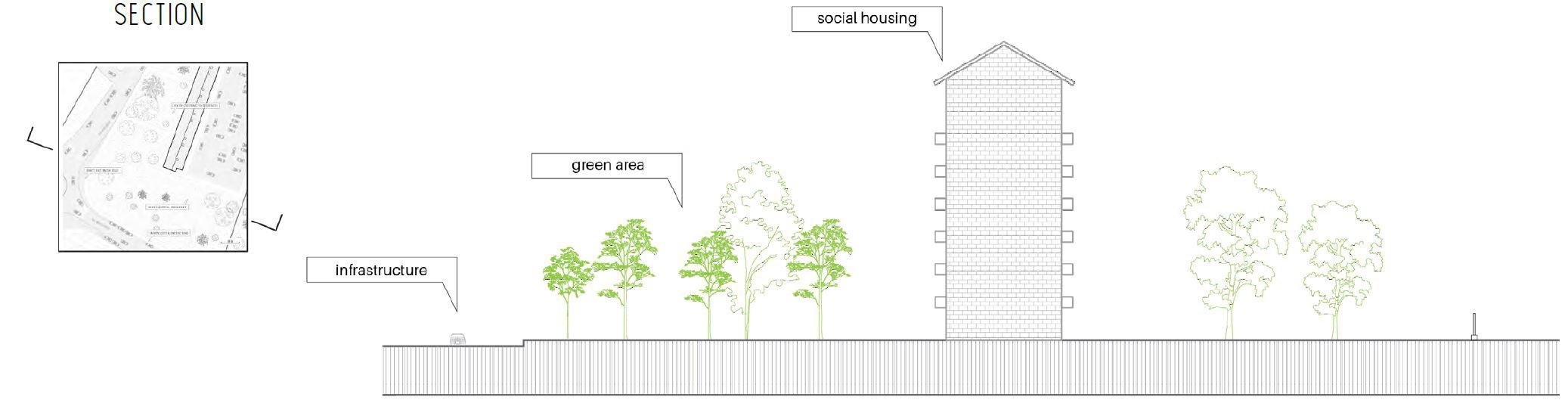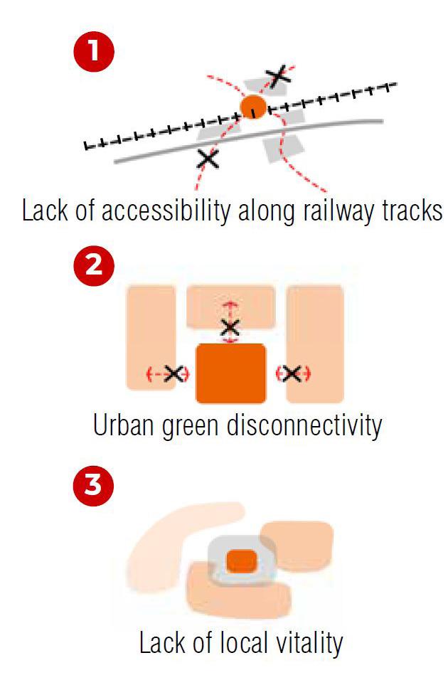 However, the large scale buildings come up with high potential for green roof. The structure of elevated railway can be adapted for green walls. The new development will brings activities in.
