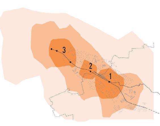 Accessibility by a variety of means can be a determining factor in the success of a project, especially when it comes to a neighborhood that faces an increase in the average age of its residents. An ageing neighbourhood should be flexible and adapt itself according to the demographic changes, and the evolution of societal needs: accessibility issues, comfort necessities, autonomy constraints etc. The maps show the isochrones, areas that can be reached by different means of transportation (by bicycle, on foot, or in a wheelchair) in different amounts of time: in 2, 5, or 10 minutes. The “origin” areas have been identified in the public spaces along the Metro 1 line, which for a part runs alongside Green Ray 7.