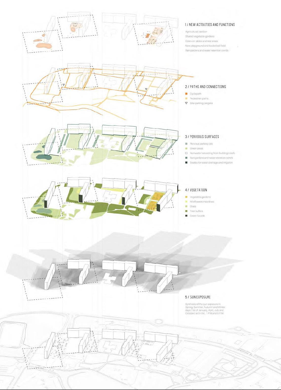 Patches Succession refers to the fact that Green Ray 7 is composed by green areas already established like Parco Sempione, City Life area, Monte Stella, Ippodromo, Parco di Trenno. What is missing is the connection between the open spaces, which occurs only through the existing streets, often large arteries with green spaces that serve only as a division between one street and another. The green areas and the public spaces look like small fragments that do not interact with each other, seem to have no relationship. The proposed territorial strategy aims to connect, to create infiltrations in the urban matrix, and finally to integrate these fragments giving them a function, activating them for the community.